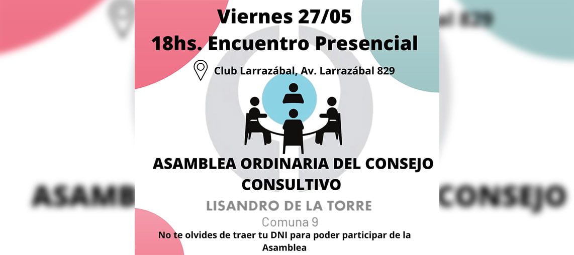 La asamblea ordinaria del Consejo Consultivo de la Comuna 9 se realiza una vez por mes. En mayo, se volverá a la presencialidad luego de muchos meses de realizarlas de manera virtual, a través de Zoom.