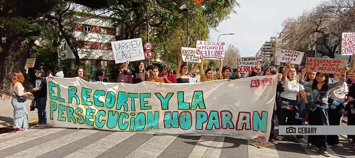 “No dejemos que la Educación Pública esté en peligro de derrumbe”, fue una de las consignas que utilizaron los alumnos en el corte de la intersección de la Avenida Juan Bautista Alberdi y Lacarra, llevado adelante el jueves a partir del mediodía.